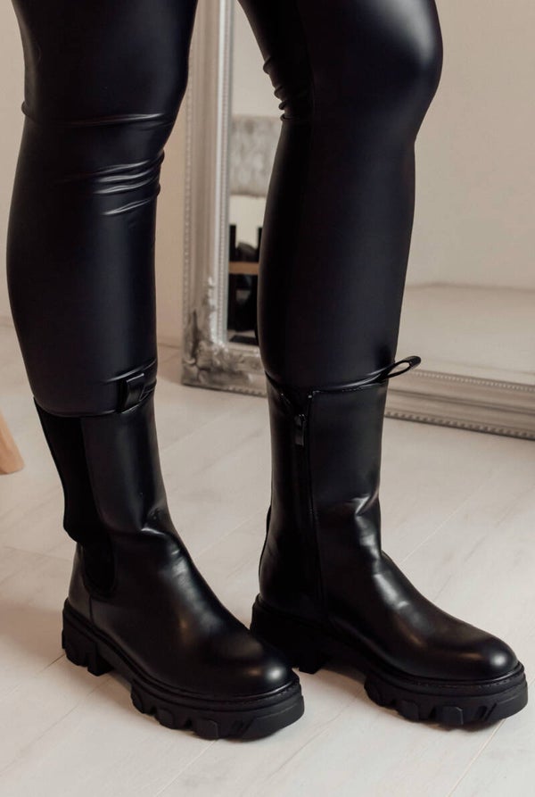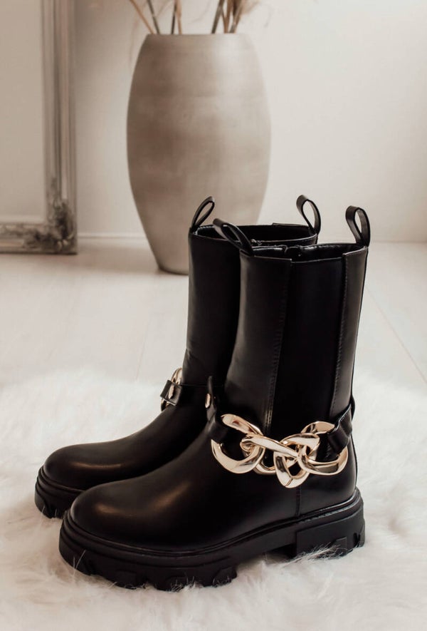 Middellange laars met afneembare accessoire. Rits aan de binnenzijde. Neem een maat kleiner.