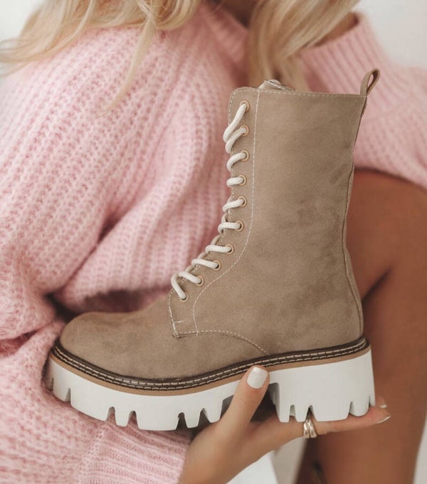 Bağcıklı ve fermuarlı kahverengi bot. Çok hafif. Kendi bedeninizi alın.