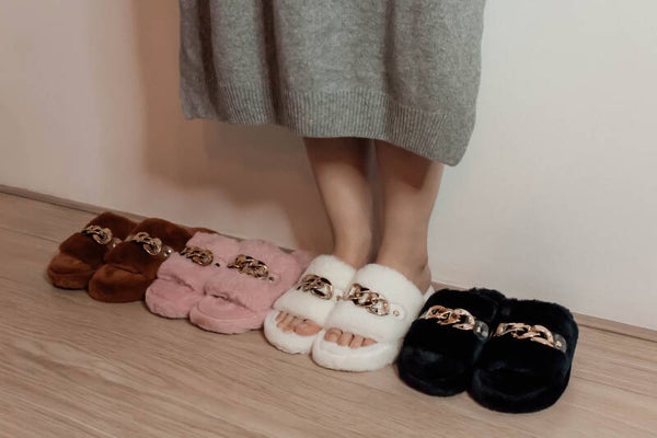 Heerlijke zachte pantoffels met gouden accessoires. Neem je eigen maat.